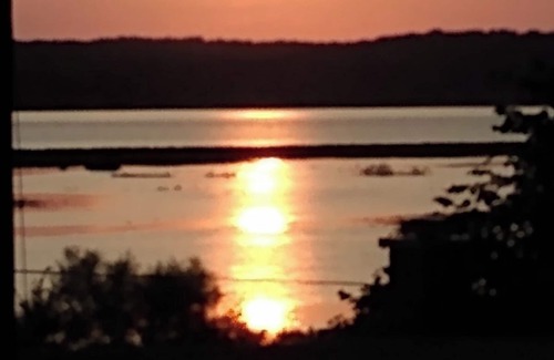 The views from this cabin offer views of the Mississippi River, gorgeous sunsets, eagles soaring, pelicans bobbing along, and other water wildlife. Barges cruise up and down the river on a regular basis, as well as river boats, and fishing boats. Trains rumble along the Iowa side of the river at different times. The lily pads add to the canvas and begin to bloom a lotus shaped bloom in mid-summer.