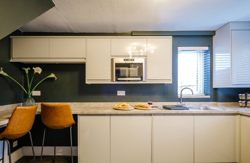 Rockside features a fully-fitted kitchen, breakfast bar, a chic, light-filled sitting room with patio doors leading on to the private gardens. Upstairs are three large bedrooms: two featuring king-size beds and one with a luxury bunk bed designed for use by adults and/or children plus a good-sized bathroom with bath and shower. All fixtures and fittings are curated with an expert-eye to make your stay as pleasing to the eye as it is supremely comfortable.