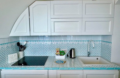 'La Clarissa', a romantic cottage on the S.S. Amalfitana, is 800 meters from the pretty village of Minori. Attention to detail, with the large terrace projected on Marmorata Bay, it's ideal for a couple looking for a relaxing corner nestled in the beautiful Amalfi Coast. The house consists of two levels connected internally by a spiral staircase and externally by a large staircase on the terrace.