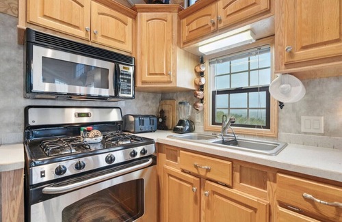 High above Lake Winnipesaukee off a rugged mountain road, this tiny house packs a big impact: panoramic views, plush seating, and total privacy for two. Brew your coffee in the mini kitchen, climb to the loft for sunrise lake views, or spend the night stargazing beside a giant stone firepit. Just you, the woods, and the beautiful sound of silence.