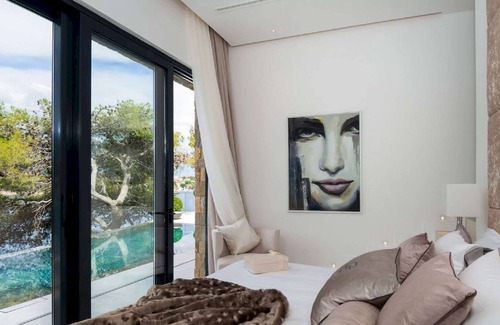 Rent luxury seafront villa with 4 bedrooms, gym, sauna, home cinema and wine cellar! Situated only 5 meters from the crystal clear sea, the villa has a private beach and boat mooring.