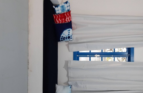 The house has a bedroom with a queen bed, and the maximum capacity is for 4 people, 2 of which are placed on mattresses or - in the case of children - on a masonry sofa in the living room. The room has air conditioning and a ceiling fan, and a great quality mattress.