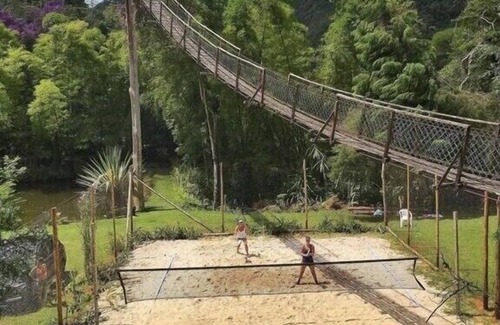 In the recreation area we have two courts, one of sand and the other of grass, lawn soccer field (20x10m), Badmington court, private mountain bike trails, geek, snooker, ping-pong, playground for children, slide and swing, nature trails! Eventually we may have a leisure area sharing with family members and / or their friends. We are always excited for a challenge in Voley / Tennis / Ping pong ...