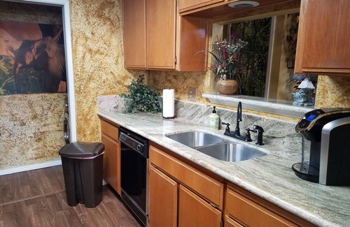 Beautiful, Newly Refurbished Convenient Condo in community with lakes throughout. WIFI - Roku TV, Great shopping: Trader Joes, Miyoshi Sushi, Tutti Frutti, Albertsons, CVS, El Pollo Loco, Burger King, Health Food Store, Applebees, Tahoe Joe's Steak House and Cold Stone Icecream. Safe Area, Utilities Included, Blackout Bedroom with Plantation Shutters.