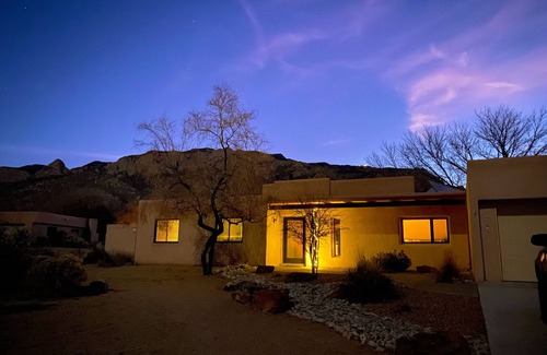 Welcome to unparalleled views of the Sandia Mountains, hot air balloons over the city and starry desert nights! This spacious, modern home offers easy access to mountain trails, the aerial tram, and the city of Albuquerque. A modern, open-plan kitchen, dining and living space with floor to ceiling sliding glass doors offer a relaxed indoor-outdoor atmosphere. You're invited to enjoy backyard patio dining by the fountain and fire pit, perfect from morning coffee through sunset dinners. With three bedrooms, three full bathrooms and an office, there's plenty of space for both privacy and shared connection. Treat yourselves to a getaway on the edge of the city. Former guests report enjoying the privacy, views, location and amenities, and more than a few have rebooked for another stay. The house traditionally has a 90%+ occupancy rate - if you see an available time that suits your schedule, we recommend booking it while you have the chance. Come join us!