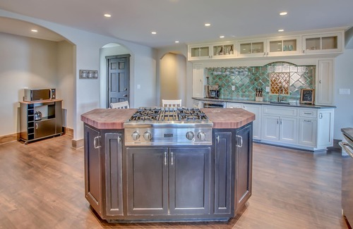 Built for relaxation, every room of this charming chalet on the lake is guaranteed to help relieve you of the tension that invades your everyday life. The open concept kitchen decorated in cool shades of mint and gray offers two refrigerators, two ovens, and a unique kitchen table created of natural edged wood and polished to a warm and golden glow. The coffee bar will help perk you up in the mornings, and the wine refrigerator will help you wind down each evening. When it comes time to enjoy the meals the resident cook has created, there are plenty of options that allow guests to commune together, from the table in the kitchen to the two large picnic tables on the enclosed four-seasons porch to more tables and chairs located on the deck, open to the lake that is your backyard! Grill the fish caught from the dock on a large Weber grill and enjoy every bite as you watch the sun set over the lake.