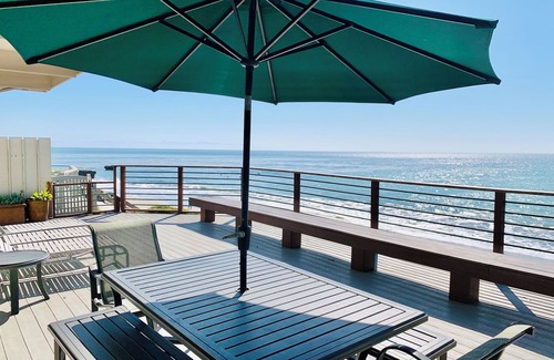 Relax in style at this spacious 4 bedroom, 3 bath home (sleeps 8) perched right on the water. Just steps to the sand and a one-minute walk to Moran Lake Beach, this home offers panoramic 180° views of the beautiful bay from Monterey/Carmel all the way to Santa Cruz. By day, soak up the sunshine and ocean activity; by night, enjoy the sparkling Santa Cruz city lights and breathtaking sunsets. Gather on the expansive oceanfront deck with a gas grill, dining set, and lounges—perfect for BBQs, sunsets, or simply relaxing with a book. An additional upper deck off the master suite provides a private perch for quiet mornings or stargazing evenings.