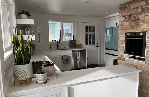 Our newly remodeled Camano Island home is a spacious 2100 square feet of modern coastal design. Downstairs features a large living and dining area with big windows to enjoy the view and a 50-inch smart TV to curl up with your favorite shows when the sun goes down. Our fully appointed kitchen features top-of-the line appliances and everything you need to make a meal. There’s also a bathroom with tub on the main floor.
