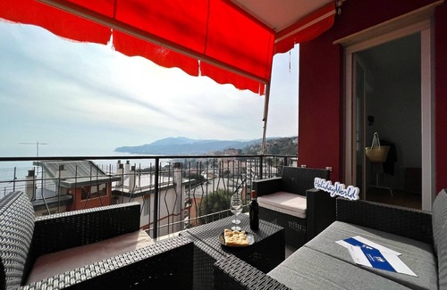 Seaside Luxury is an elegant and bright flat located a few steps away from Cogoleto's seafront. The accommodation comprises a living room with a double sofa bed, a niche with a bunk bed for adults and children, a kitchenette and dining area, a double bedroom and a bathroom. From the bedroom and the living room you have access to a large balcony with a sitting area, from which you can enjoy the sea air and the beautiful view, as well as a quiet outdoor space at the back, on the mountain side. The flat is located on the floor below the entrance to the building, but is on the third floor of the south facade (viale Degli Ulivi).