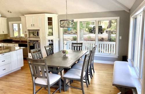 Forget your worries in this spacious and serene tree house within Mashpee's New Seabury Neighborhood. Situated centrally between South Cape Beach, Popponesset Marketplace and Mashpee Commons, you are at the heart of it all. Plenty of space with 5 large bedrooms, 2 living spaces, and an open concept kitchen/dining/living room that overlooks a beautiful marsh. Soak up the sun, breathe in the fresh air, and listen to the diverse birdlife from our wrap-around deck.