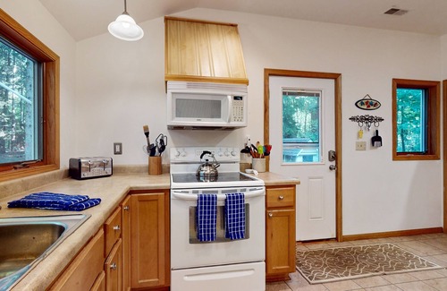The 4 neighboring homes on Evergreen Lane are a neighborly community committed to the peaceful enjoyment of the woods and beach. Therefore, we do not permit the use of music speakers outside the cottage or on the beach nor jet skis, or other motorized watercraft. All non-motorized watercraft are welcome! This cottage is ideal for families & friends gathering for quiet time away in nature. It would not be the appropriate setting for those looking for a party rental.