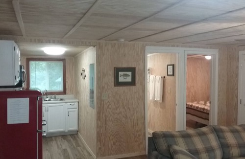 Nestled within a tranquil lake community in the Hoosier National Forest, Cabin 2 offers a cozy retreat for nature lovers. This 576 square foot haven features a queen-sized bed, a convertible sofa bed in the living area, a well-equipped kitchen, and a full bathroom with a shower. The cabin's living space is complemented by ample windows that frame the surrounding natural beauty. Enjoy the serenity on the 160-square-foot screened porch, complete with a large fan for those still summer days. Although close to Patoka Lake, the cabin's summer views are forest-rich.