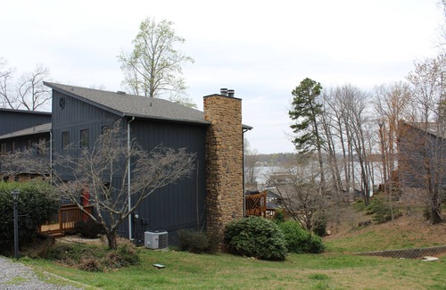 Beautiful three level end unit townhouse just steps away from the water. Private subdivision in a great lake location; deep, clear, pristine water! This lovely townhouse can sleep up to 6 people. Two bedrooms on upper level with full bath. Master bedroom has private deck overlooking cove. Features 4 TV's. Full size washer and dryer. The main level is fantastic for entertaining. Two sliders open onto deck. Xfinity Internet.