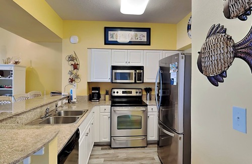 This condo offers comfortable accommodations for six, featuring a cozy primary bedroom, a recessed bunk nook perfect for kids, and additional sleeping space in the living area. Thoughtful touches throughout ensure everyone has a restful and relaxing stay.