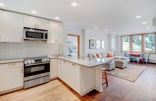 Additional amenities include high-speed wireless internet, a washer/dryer, and convenient parking in a heated garage. Located just moments away from Winter Park's vibrant dining and shopping scene, this condo is the perfect base for your mountain adventures.
