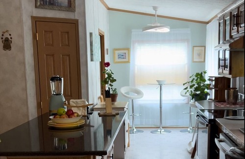 Each room greets you with fresh clean walls, modern lights, comfy amenities. Second queen size room has an old piano to play around if so inspired. Multiple work/reading areas.