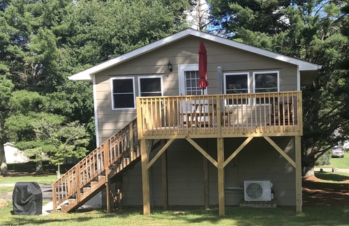 Conveniently close to Waynesville, Maggie Valley, and Sylva - restaurants, golf, hiking, shopping, rafting, zip lining, craft breweries, antiquing, and much more within 15 minutes. Blue Ridge Parkway entrance 1 mile away. At 3900 feet but no steep or winding mountain roads.