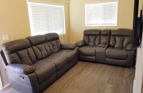 Lic# 20731308 Just remodeled Dec 2019. Two bedroom duplex with queen bed in Master and two twin beds in second bedroom. Comfy couch and love seat in living room. Full size, fully stocked stainless steel kitchen for preparing meals. Brand new bathroom with tub shower. Large area for parking vehicles. Very close to the Desert Diamond Casino. Quick trip to the Tucson International Airport, San Xavier Mission, Old Tucson Movie Studio and Arizona Sonora Desert Museum!