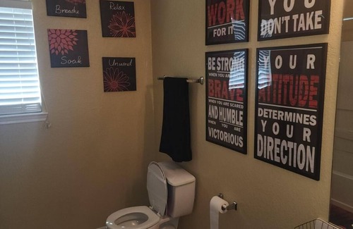 Get ready to relax in this marvelous 4-bedroom house in Baytown. With a variety of sleeping arrangements including a king bed, full bed, bunk bed, two queen beds, and a murphy bed, this tranquil retreat offers plenty of space for guests to unwind. Enjoy the convenience of two and a half bathrooms with a bathtub and shower. This is the perfect setup for large families or small family gatherings. We're happy to assist with any questions while you stay at our house.