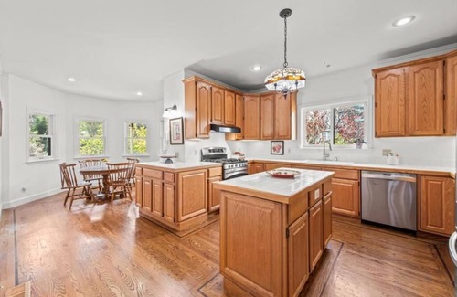 Located in Pacifica, this superb house boasts 4 bedrooms including 1 king bed, 1 twin bed, and 2 queen beds. With 4 bathrooms featuring showers and a bidet, guests will feel right at home. Beautiful, wooded suburb, one mile from the beach and 10 minute drive/Uber into San Francisco.