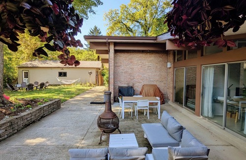 Spacious 4BR Mid-Century Modern Retreat in Dayton with Play room and Patio | House in Dayton, OH