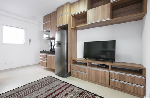 Spacious and complete studio next to Allianz Parque, it has a garage, 24-hour concierge, twisted balcony, television, wi-fi and kitchen utensils, queen-size bed and air conditioning for your comfort.