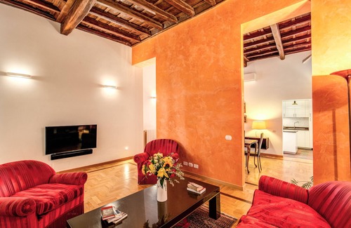 Antique furniture, parquet flooring and wooden ceilings. Three bedrooms with three private bathrooms, living room, dining room, full kitchen and private courtyard. Wi-fi, Smart TV, air conditioning. You will spend your holiday in comfort and elegance in an ancient building of '700 with modern comfort. This apartment is located a walking distance from some of the main attractions site like the Spanish Steps and the Pantheon. You will explore the old city with the pleasure of feeling behind the home!