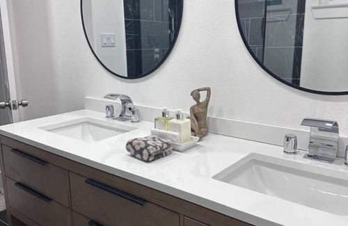 Bedrooms & Bathrooms: 7 thoughtfully furnished bedrooms with 11 beds provide flexible sleeping arrangements for groups. Four modern bathrooms, including a double vanity setup, keep mornings stress-free.
