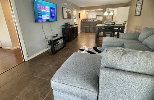 Spacious Corner Unit – 3BR Ground-Floor Condo w/2 Patios, Smart TVs & Scenic Pond Views is located in Wesley Chapel. Spacious Corner Unit – 3BR Ground-Floor Condo w/2 Patios, Smart TVs & Scenic Pond Views provides accommodation, featuring Air Conditioner, TV, Balcony/Terrace, among other amenities. This Condo features Air Conditioner, TV, Balcony/Terrace, to make your stay a comfortable one.