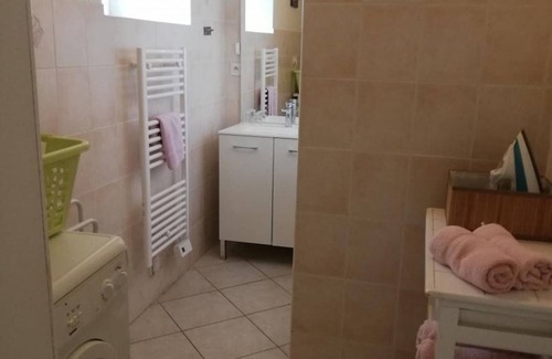 Detached house. Ground floor: Living room with fireplace insert (TV, Internet). Kitchenette (microwave, dishwasher, fridge-freezer). Shower room (shower). WC. Upstairs: Bedroom 1 (1 bed 160x200) and a cot with bars. Bedroom 2 (2 beds 90x190). Bedroom 3 (1 bed 160x200). Shower room with WC (shower). 1 travel cot and high chair. Washing machine. Sheets and towels provided. Cleaning service at an additional cost. Wood provided. Electric heating included. All charges included. Private enclosed grounds. Cellar. Gravel courtyard. Garden furniture. Barbecue. Swing set. Ping-pong table. Bicycles available and other outdoor games (pétanque, badminton, molky). In this quiet and wooded area of the marshes, you will stay in a spacious and bright cottage. Hot water production by solar panels. D-Day landing beaches 21 km away.