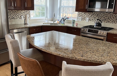 A beautiful single family home located on a quiet cul de sac within minutes to downtown Saratoga Springs, SPAC, Racetrack and more! Imagine horse racing, going to a concert and dining out on the town in Saratoga then within minutes being able to come home to the relaxing space you rented with a heated pool, plenty of seating areas outside. There is a large freshly painted deck and a new Weber gas grill hooked up to a dedicated gas line so you are not filling a propane tank! A huge yard that allows the room for you hang out and play yard games! (We have Yard Yahtzee and Corn hole for you). The home features a large open concept kitchen with a wine fridge and plenty of extras including an air fryer, blender and all of the necessities to cook! We recently added a game room complete with chess, checkers, card games, and board games! The house features a large primary bedroom with 2 closets (both huge walk in closets) and an en suite bath, double vanities and separate shower! 3 other bedrooms will accommodate your additional family members (all bedrooms are on the second level) and our finished basement is sure to please with a NEW Peloton bike and games for the kids! There is extra sleeping space in the basement as well, There is also a dedicated office/flex space for those of you who have to work. (I am also guilty of this on vacation) but it is outfitted with a desk, chair and a printer for you to complete your work! There is also a new queen sleeper sofa in the office for extra sleeping space! We are also a Smart home with built in Bluetooth speakers in the Primary bathroom, Bluetooth table speaker in the living area, Nest Doorbell and more! Everything you need will be here for you to have the MOST amazing stay in our beautiful town! Located on a quiet cul de sac! PLENTY OF PARKING!!