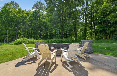 Spacious, historic, center hall colonial is 2.5 miles to Broadway & SPAC, and 4 miles to the Saratoga race track. Has 3 bedrooms and 2 full bathrooms upstairs, that comfortably sleeps six. First floor includes a large open concept kitchen and dining room, large family room with adjoining sunroom, and a half bath. For parties larger then 6, there is plenty of room for air mattresses and the family room now has a brand new 5 piece sectional couch. The sunroom also includes a pullout sofa. Great outdoor patio with dining set equipped with gas grill and fire pit. Plenty of parking with circle driveway in front. Washer & Dryer in laundry room on 1st floor. Updates include modern kitchen with stainless steel fridge, microwave/oven, toaster oven, coffee Kurig, granite countertops and light fixtures. Kitchen is fully stocked with dishes, pots and pans. Newly painted throughout and updated bathrooms. WiFi, air conditioned, garbage removal, home gym included.