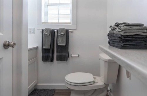 The kitchen has plenty of room for cooking and is fully-equipped with a sink, stove, oven refrigerator, microwave, coffee maker and toaster. Dishes, pots and pans, cutlery, and utensils are also provided. Towels, washcloths, soap, and shampoo are included in your stay.