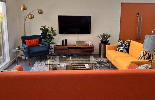 Designed by William Krisel and newly remodeled, Canyon View Clubhouse is a private oasis and well-placed launch pad for all your wanderings. This midcentury gem is situated close to the Ace Hotel & Swim Club , hiking trails and minutes to downtown. Guests will enjoy countless amenities – including private outdoor lounging, ping pong, full kitchen, pool, spa, and grill – while you work from “home” or enjoy cocktails in the pool.
