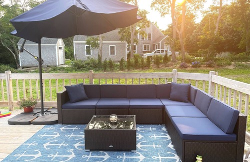 Freshly Painted and Newly Decorated! 4 bed/2 bathroom beach cottage on a quiet, sandy dead-end road in quaint Eastham. Our house a short <1-mile walk or bike ride to either Campground Beach or Cooks Brook Beach. It's just a 10-minute drive to World Famous Coast Guard Beach, Nauset Lighthouse and the National Seashore. You are only a short drive from local shops, iconic restaurants, and the famous Wellfleet Drive-in. If you prefer to walk, a deeded wooded path through a winding trail will bring you to a picturesque overlook of a quiet and private bayside beach located in between Campground and Cooks Brook. Take a snack or a bottle of wine on your 5-minute stroll to watch the stunning Cape Cod sunset on a private beach.