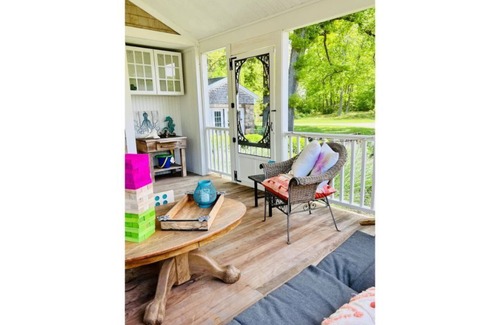 Welcome to beautiful Stone Garden Getaway, surrounded by perennial gardens, stone walls, & a fountained pond. Steps away from Westwoods hiking trails, Bishops Orchard + Winery & charming Guilford. Relax with friends and your entire family, including your favorite pooch. Enjoy dinner + drinks, watching the sunset on the sea-grass flanked screen porch. Plenty of stargazing from the patio. 2 miles to the sea glass collecting Shell Beach. A quick drive to the shoreline’s biggest state park.