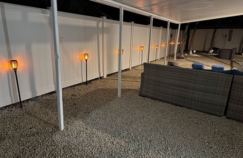 The outside has a porch and a relaxing area w/BBQ. Fully fenced with 10ft slide gate and 12ft swing gate for boat or add. parking. It sits on a 6000 sq. ft. lot. We are not located on the water but we do offer access to a private boat ramp that will accommodate up to a 23' boat. There is no dockage available at this location but the boat ramp is only 3 blocks away, it is easy to put the boat in/out of the water daily. Outdoor shower.