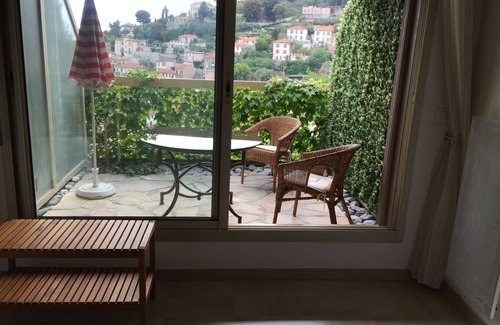 Studio 30m2 with sea view terrace, fully equipped kitchen, fridge, hob, washing machine, microwave, bathroom with bath with shower, wc