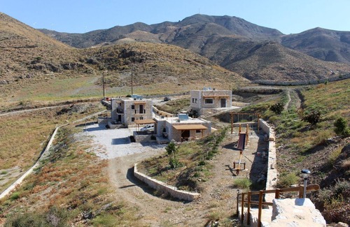 Built of light natural stone, the seven residential units fit harmoniously into the foothills of the mighty Asteriousia Mountains.