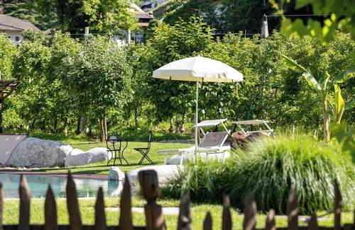 The apartment includes a furnished balcony, from which you can enjoy the impressive view of the mountains while having breakfast together. In the shared outdoor area you will also find a well-kept garden, which invites you to relax. Here you can refresh yourself in the solar-heated swimming pool with pond area, children's area and Kneipp area (without added chlorine) or sunbathe on the large wooden terrace on one of the comfort loungers.