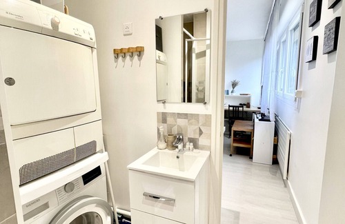 Discover this charming 18 m² studio located in Saint-Germain-en-Laye, an ideal destination for a comfortable stay for one or two. This small modern cocoon, perfectly optimised, is designed to offer maximum comfort in a compact and functional space.The studio has a cosy and bright living space, tastefully furnished, where every square metre is intelligently used (double sofa bed). Whether you are on a business trip or a romantic getaway, you will find everything you need to feel at home.The open kitchen, equipped with induction hobs, is fully functional. It will allow you to prepare your meals with complete ease, thanks to its modern and practical equipment.The bathroom, compact but well-designed, includes a washing machine and a tumble dryer, a real plus for stays of several days or for those who travel light.With its privileged location in Saint-Germain-en-Laye, in a calm and pleasant environment, this studio is the perfect balance between comfort, practicality and independence. You will enjoy a pleasant living environment while being close to transport, shops, and the many cultural and natural attractions of the region.This pied-à-terre offers a welcoming space that guarantees a stress-free stay, in a warm and well-equipped setting.Please note that our accommodations are not equipped with condiments, food products (salt, pepper, oil, etc.), or toiletries such as soap. Remember to bring what you will need for your stay.Coffee maker type: Nespresso capsule machine