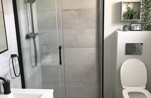 Equipped kitchen: oven, fridge, dishwasher, induction hob, espresso machine, toaster, kettle.