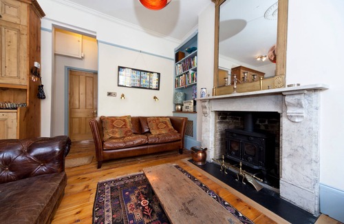 Superbly located and charming with four poster bed and ensuite bathroom. The living room is spacious with two floor to ceiling windows overlooking Victorian street lamps on our very quiet street. Beautifully decorated and well equipped kitchenette.