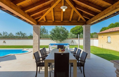 Villa Eni is perfect for a relaxing, laid-back vacation with family or friends, far away from everyday life. However, should you feel adventurous, the lively and interesting city of Pula with its whole range of possibilities is not too far away.This elegant, modern villa is located in the small village of Pavicini near the city of Pula. Pavicini is very famous for one of the oldest oil mills in Istria. You can visit it and taste fresh cold-pressed olive oil. The area is also known for fishing, agriculture and cattle breeding. Villa Eni is located 2 km from Duga Uvala beach and is surrounded by wide fields and greenery. If you want to try local cuisine, fantastic restaurants are only 10 minutes away by car. We highly recommend you to visit the following towns nearby: Pula, Medulin, Rovinj, Fayana, Vodnjan; or maybe famous islands like Losinj, Krk or Cres. Istria is a perfect vacation spot for those who want to relax, enjoy the fascinating landscapes and swim in the sky-blue sea.