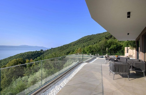 Relax in this modern holiday home and enjoy a wonderful panoramic view over the sea.