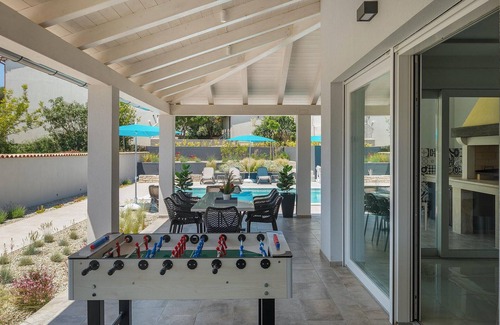 The outdoor area of Villa Dream House is no less attractive. From the living and dining area, glass doors open onto the covered terrace with dining table, charcoal barbecue and table soccer. What would a 'dream house' be without a private pool? Refresh yourself in the cool water or relax on the loungers and enjoy the Istrian sun.