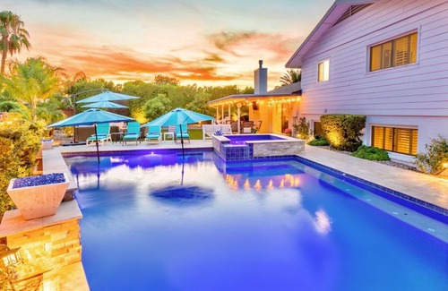 Come enjoy paradise in this brand new Scottsdale oasis with modern finishes. You'll know you're in the right spot when you see how close you are to all the major attractions Scottsdale has to offer! The spacious resort-style backyard features a brand new modern heated pool and spa (plus huge baja step for lounging or the kids to play), a built-in natural gas firepit, beer pong table, cornhole, giant connect four, giant Jenga and the popular "Bear Pong" game which is the oversized version of bucket pong. Stay in and enjoy the game on the new 82" tv set up for movie-night on the comfy sectional sofa in the basement living room! We are just half a block off the Scottsdale canal where residents and tourists of Scottsdale often enjoy going for a jog, walk or bike ride. Plus, we are less than 5 miles from downtown Scottsdale and all the restaurants, clubs and entertainment it has to offer!