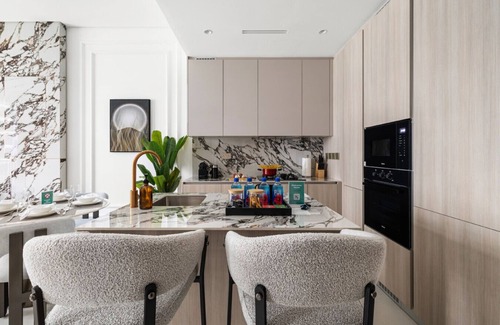 This stylish one-bedroom apartment with smart home features offers comfort and convenience. It is just three minutes from Dubai Miracle Garden and ideal for couples, solo travelers, or business guests seeking a peaceful retreat with premium amenities.