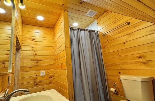 Welcome to your private retreat above the garage — a brand-new, open-concept guest suite crafted with beautiful tongue-and-groove pine. Designed for one or two guests, this cozy studio features a comfortable queen-size bed, a futon for lounging or additional sleeping space, and a well-appointed bathroom with a stand-up shower, toilet, and sink.