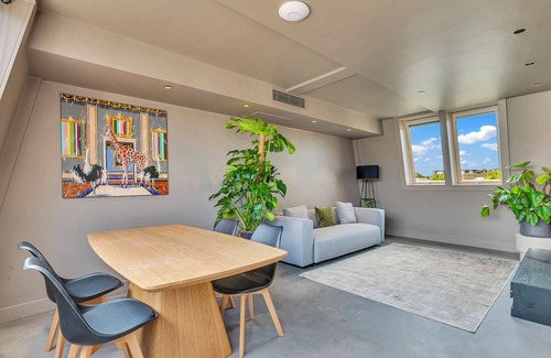 Best-rates for the Stylish Penthouse Apartment starts from $425 per night with includes Security/Safety, Guest Services, Child Friendly, Internet, Kitchen, Laundry, TV, Bedding/Linens, Fireplace/Heating, Air Conditioner, Pet Friendly with all other facilities. Casai.uk matches every traveler with their perfect accommodation, whether you are traveling with a group, friends, family, or pets.